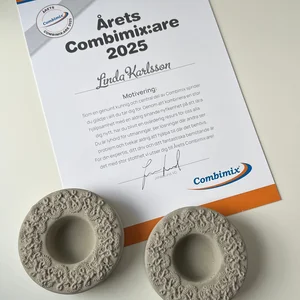 Utöver äran får Årets Combimixare en unik gåva tillverkad i vårt eget material. Årets gåva är ett hantverk skapat av konstnären Anna Christians på Craft Studio Stockholm, vilket symboliserar både vår kärlek till materialet och kraften i kreativt skapande.