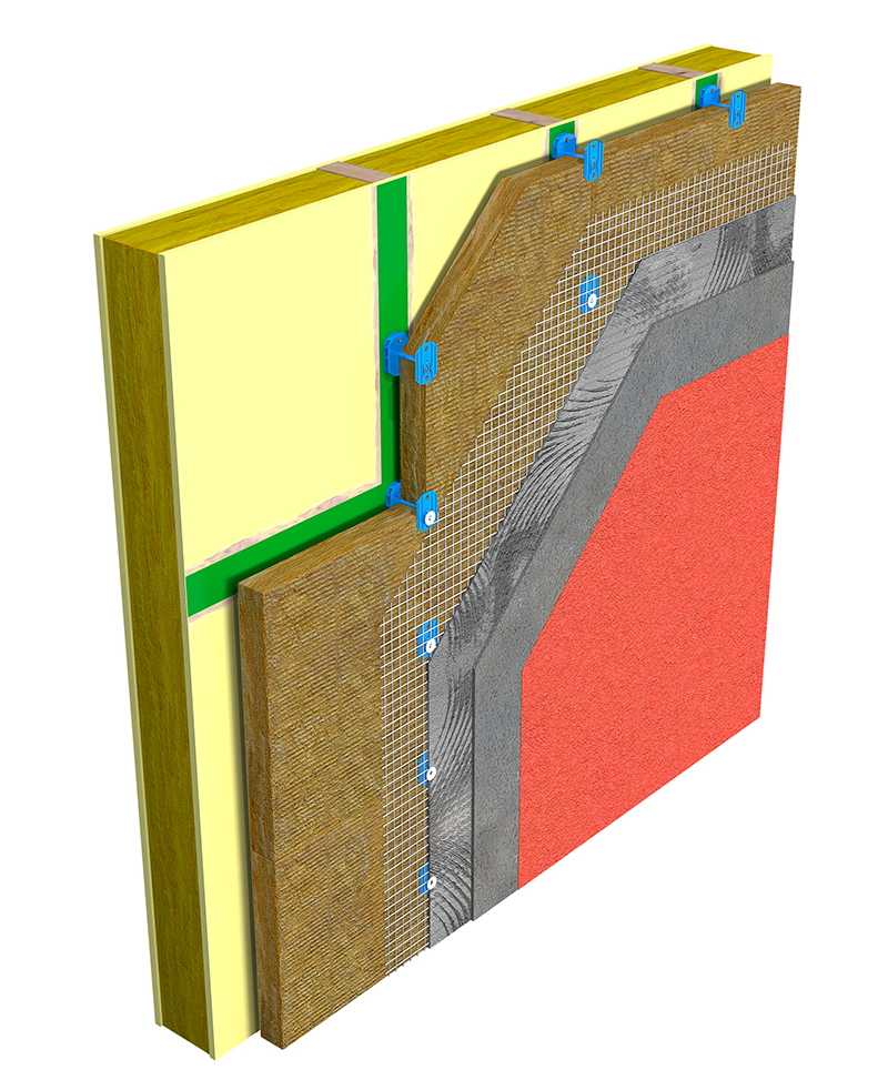Med hjälp av putsfästet Combi skapar vi också en typ av "isoleringseffekt" i luftspalten som uppstår. Det gör att Combi-Drains fördel jämfört andra tvåstegstätade fasadsystem är de isolerade egenskaperna som den obrännbara stenullskivan har i sig själv. Väggen är därmed också helt brandsäker.