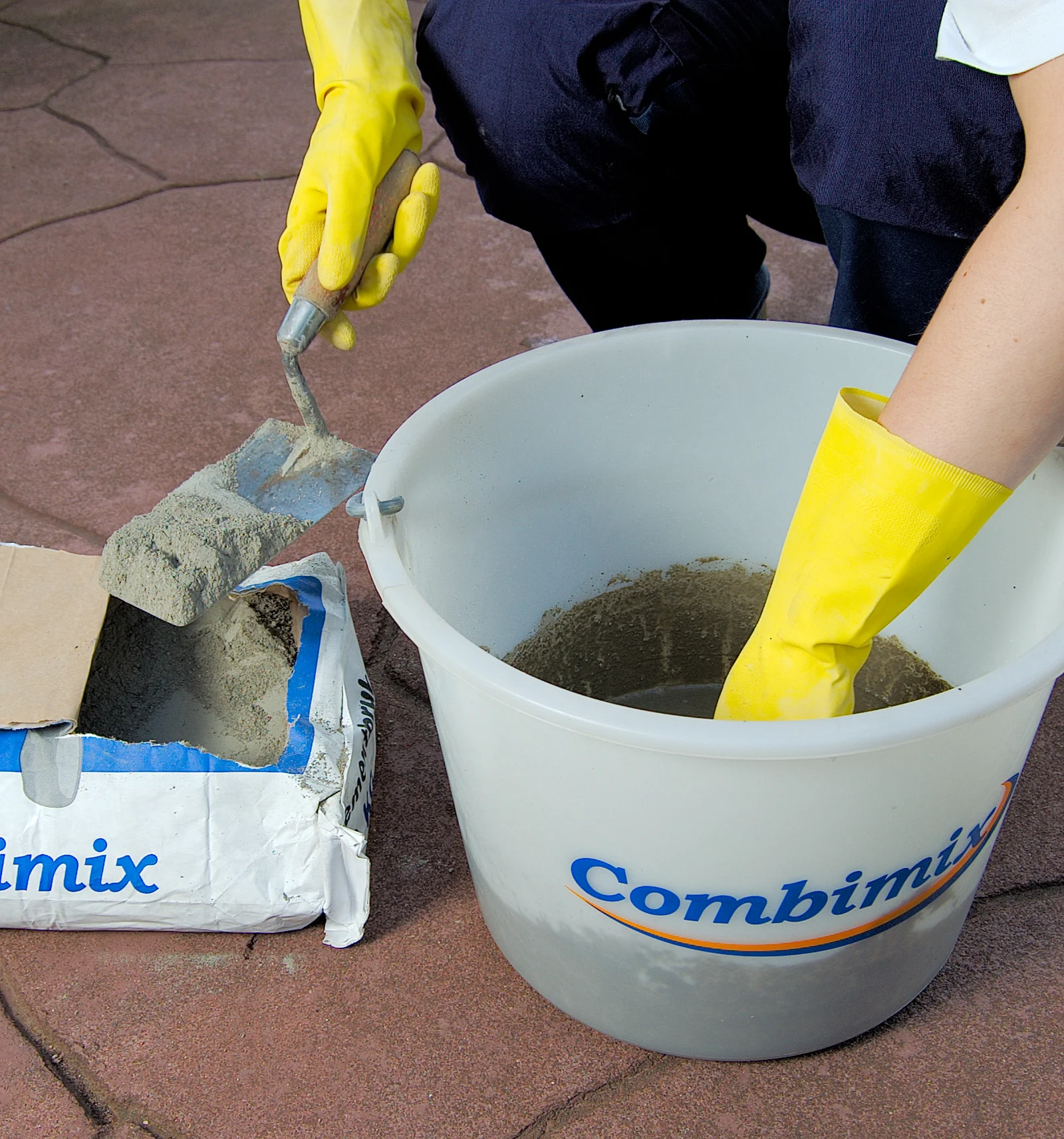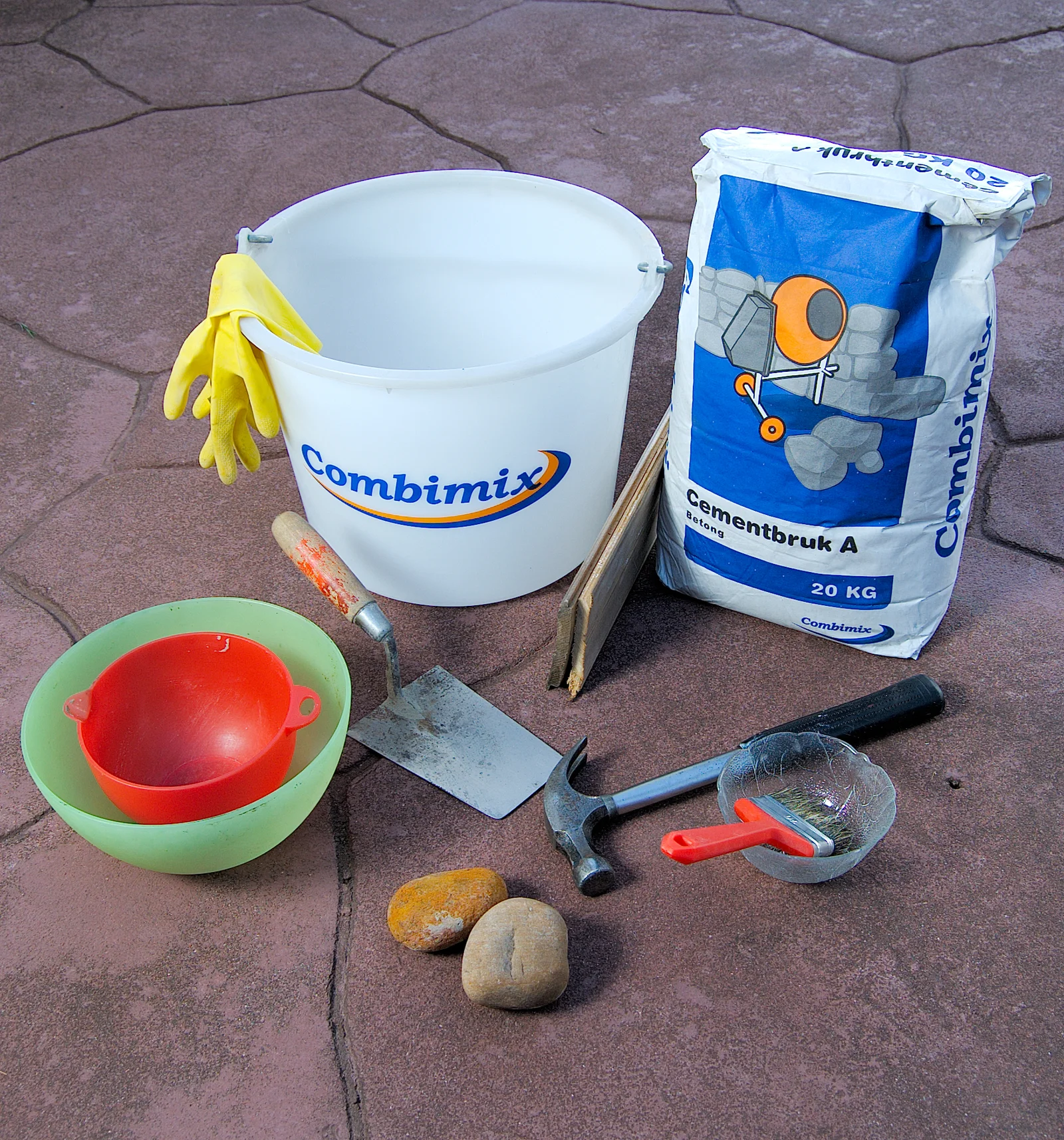 en spade betong i vattnet och blanda väl med handen. Blanda ned ytterligare betong på samma sätt tills konsistens blir som en lättflytande gröt. Blanda hellre betong i flera omgångar än att börja med för mycket.