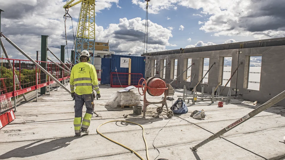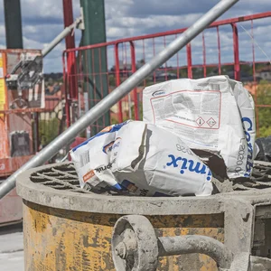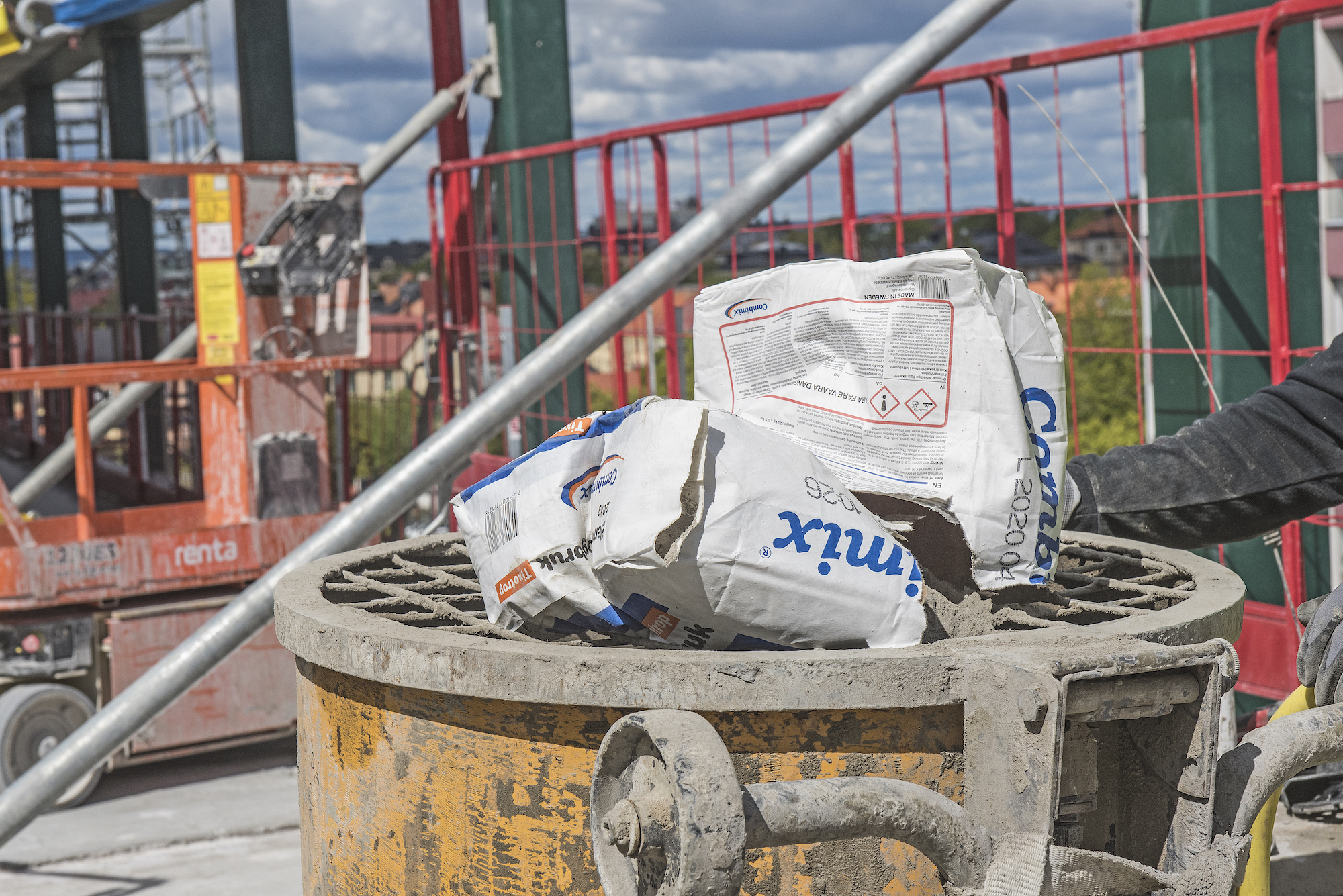 Här har våra pumpbara fogbruk använts vid undergjutning och fogning av betongelementen. Pelarna har undergjutits med Expanderbetong Std.