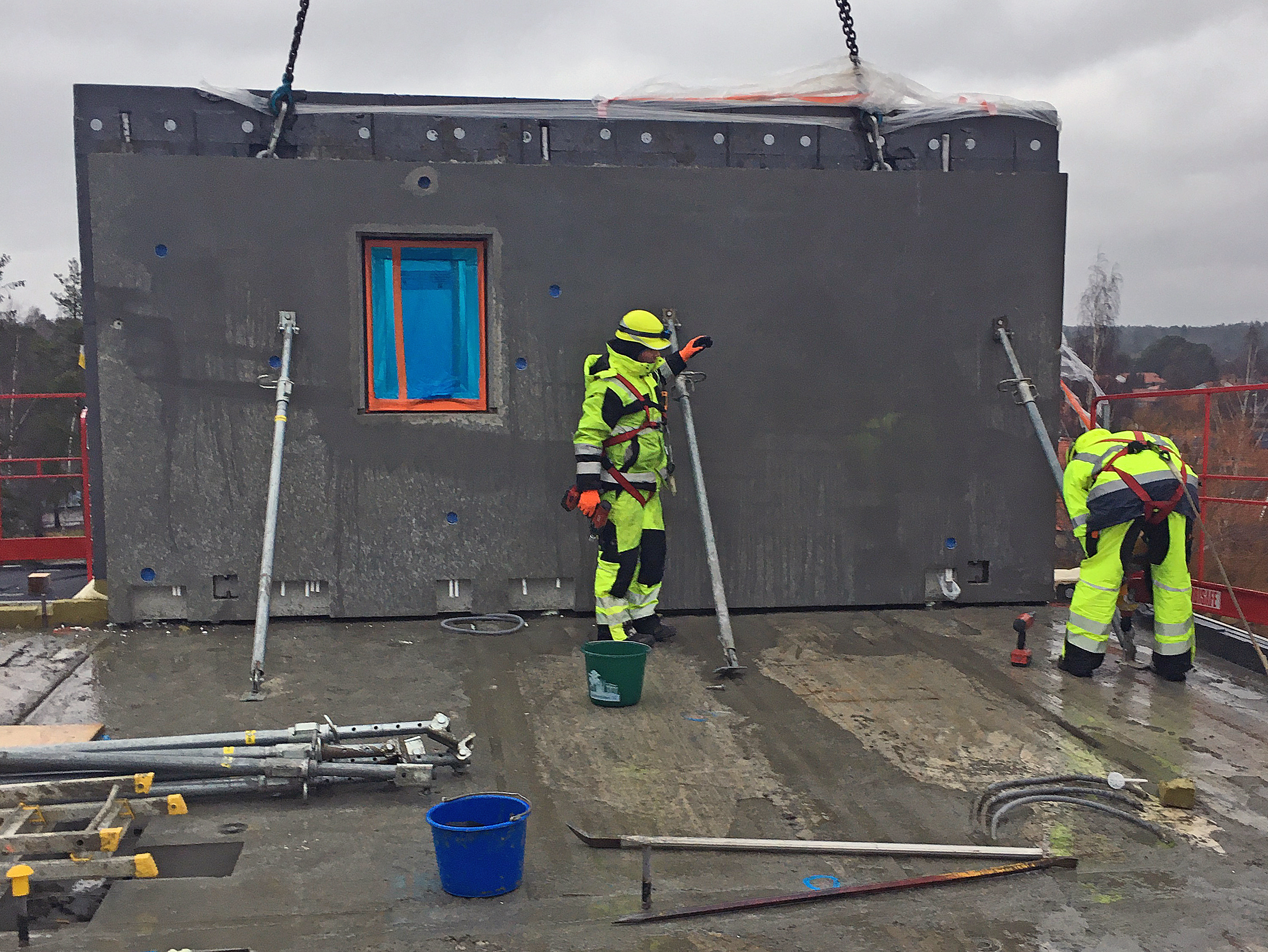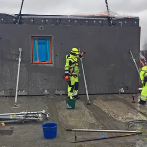 I de nya kvarteren intill Gottsunda Allé i Uppsala uppför Erlandssons Bygg 50 nya bostadsrätter i ett klimatsmart hus. Här har Erlandsson Bygg tagit in Sia Rigensi som stommontör och använt Combimix Elementfogbruk Tixotrop vid montering av prefabelementen. Elementfogbruk Tixotrop är pumpbart och ger god frostbeständighet. Den används till vertikal fogning av betongelement.