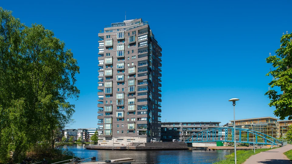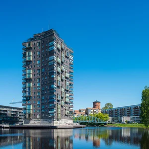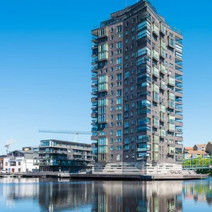 Bryggudden är ett specialdesignat höghus på 21 våningar som har ritats av Wingårdhs arkitekter. Huset som till hälften står ute i vattnet har blivit ett nytt landmärke i Karlstad. Området har inspirerats av de befintliga tegelbyggnaderna från 50-talet som finns på andra sidan kanalen. Istället för att modernisera för mycket har man tagit till vara på det befintliga och rustika som finns i området. En mörk tegelfasad med moderna glasinslag blev resultatet. Combimix har levererat Färgat Murbruk till projektet.