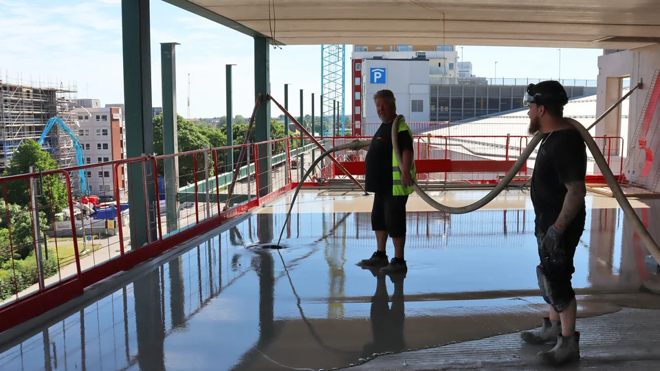 Nalles Golv har avjämnat alla våningsplanen med ca 400 ton CM Projekt Grov.